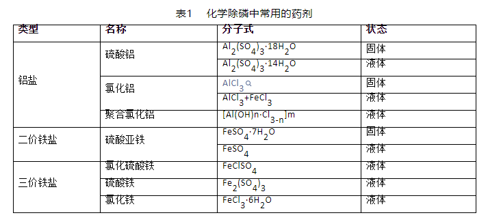污水化学除磷中常用的药剂类型如下: