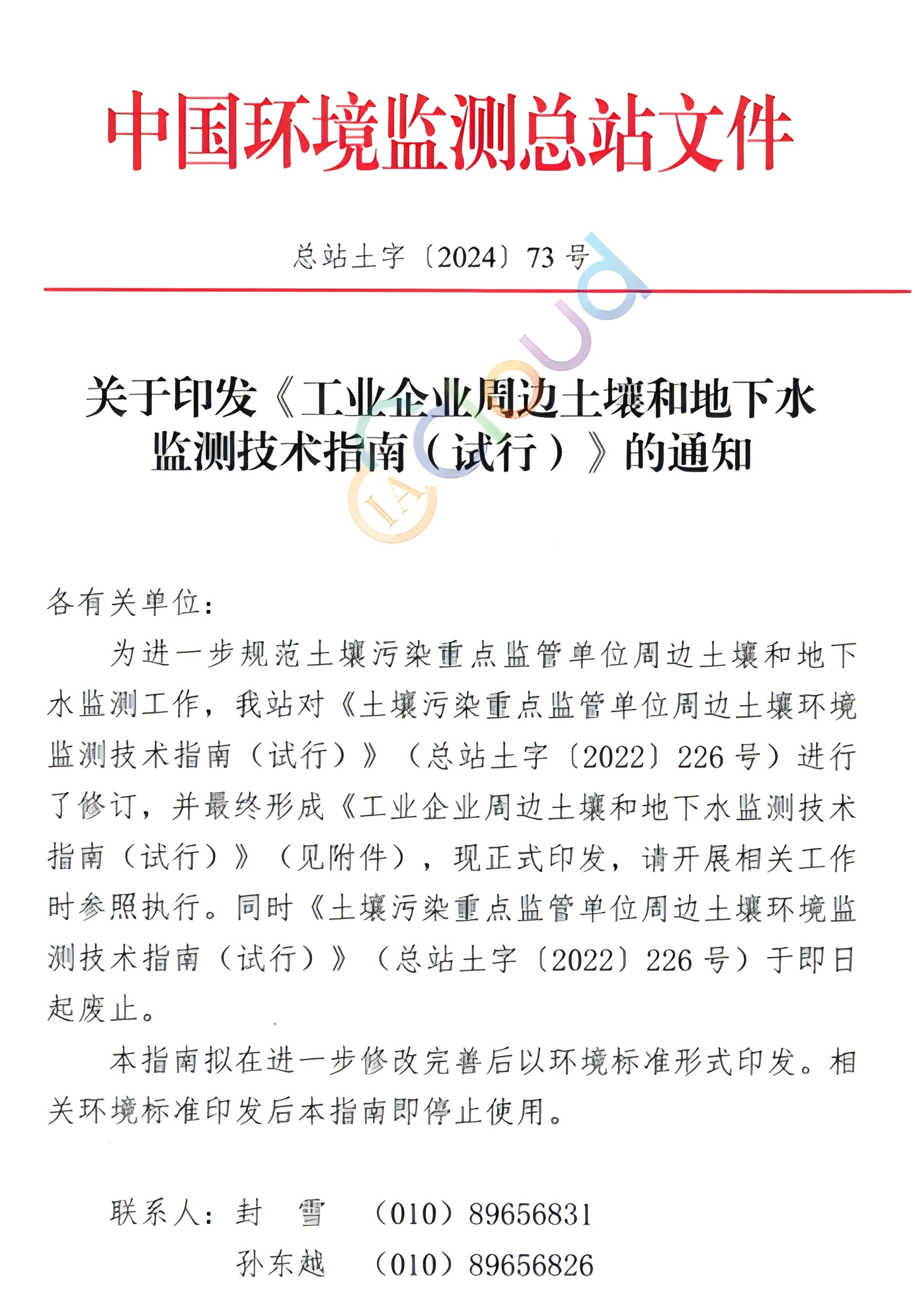 7月30日,中国环境监测总站印发《工业企业周边土壤和地下水监测技术指南(试行)》。同时《土壤污染重点监管单位周边土壤环境监测技术指南(试行)》(总站土字【2022】226号)于即日起废止。