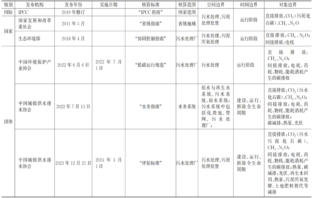 城镇污水处理厂碳排放核算标准现状分析与比较