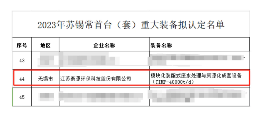 近日,2023年苏锡常首台(套)重大装备拟认定名单公示,bv1946伟德官网(以下简称bv1946伟德官网环保)“模块化装配式废水处理与资源化成套设备(TIMP-40000t/d)”成功入选,实现重大技术突破,为推动环保产业标准化、高端化、智能化、绿色化发展发挥重要作用,是本年度宜兴市唯一入选企业!