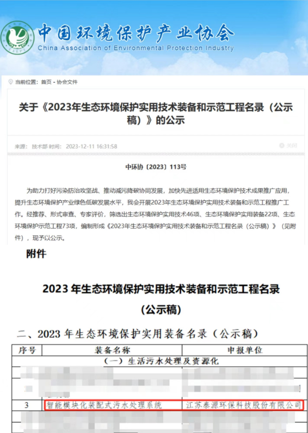 中国环境保护产业协会就《2023年生态环境保护实用技术装备和示范工程名录(公示稿)》进行了公示,bv1946伟德官网(以下简称bv1946伟德官网环保)自主研发的智能模块化装配式污水处理系统成功入选2023 年生态环境保护实用装备名录(公示稿)。