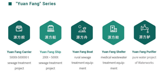 2015年在全球率先研发出装配式污水(净水)厂(TIMP智能模块化装配式集成污水处理系统),并推出源方系列产品,分别为:源方舰、源方艇、源方舟、源方舱、源方舻,实现了水质净化全领域的应用。