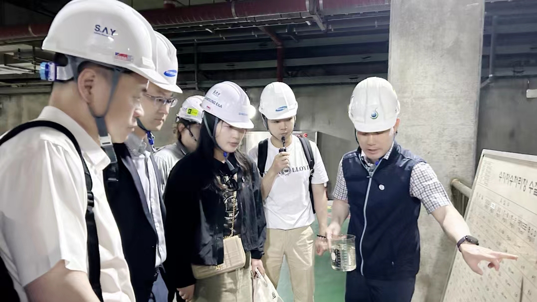 参观中,也就该污水厂的投资与收益、处理工艺、处理效果、运行成本等方面与韩国资深环保企业代表展开热烈讨论与交流。