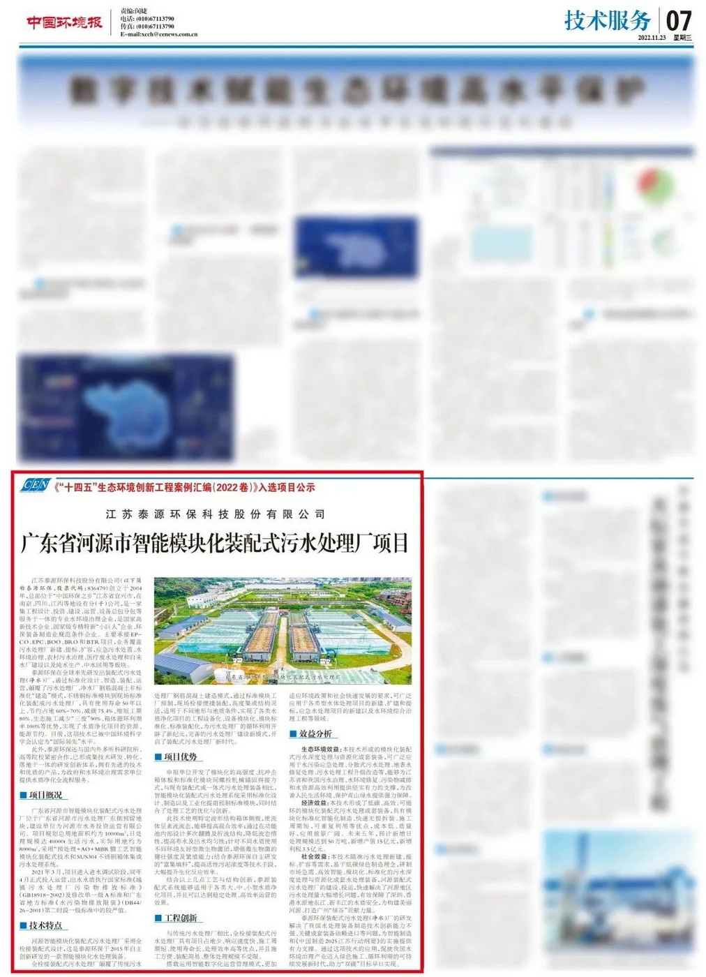 bv1946伟德官网环保设计建设的“河源市污水处理厂扩建项目”(简称“河源装配式污水厂”)正式入选《“十四五”生态环境创新工程案例汇编》。