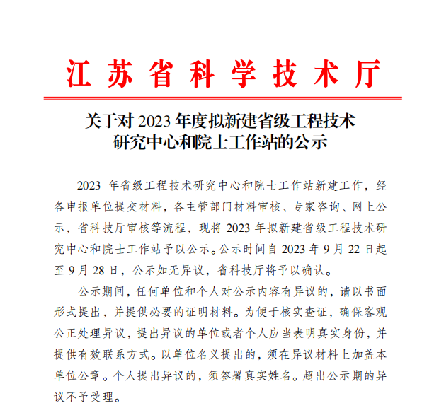 近日,江苏省科技厅发布通知,将2023年度拟新建省级工程技术研究中心和院士工作站进行公示。bv1946伟德官网(以下简称bv1946伟德官网环保)成功获批“江苏省污染防治标准与装备化工程技术研究中心”。