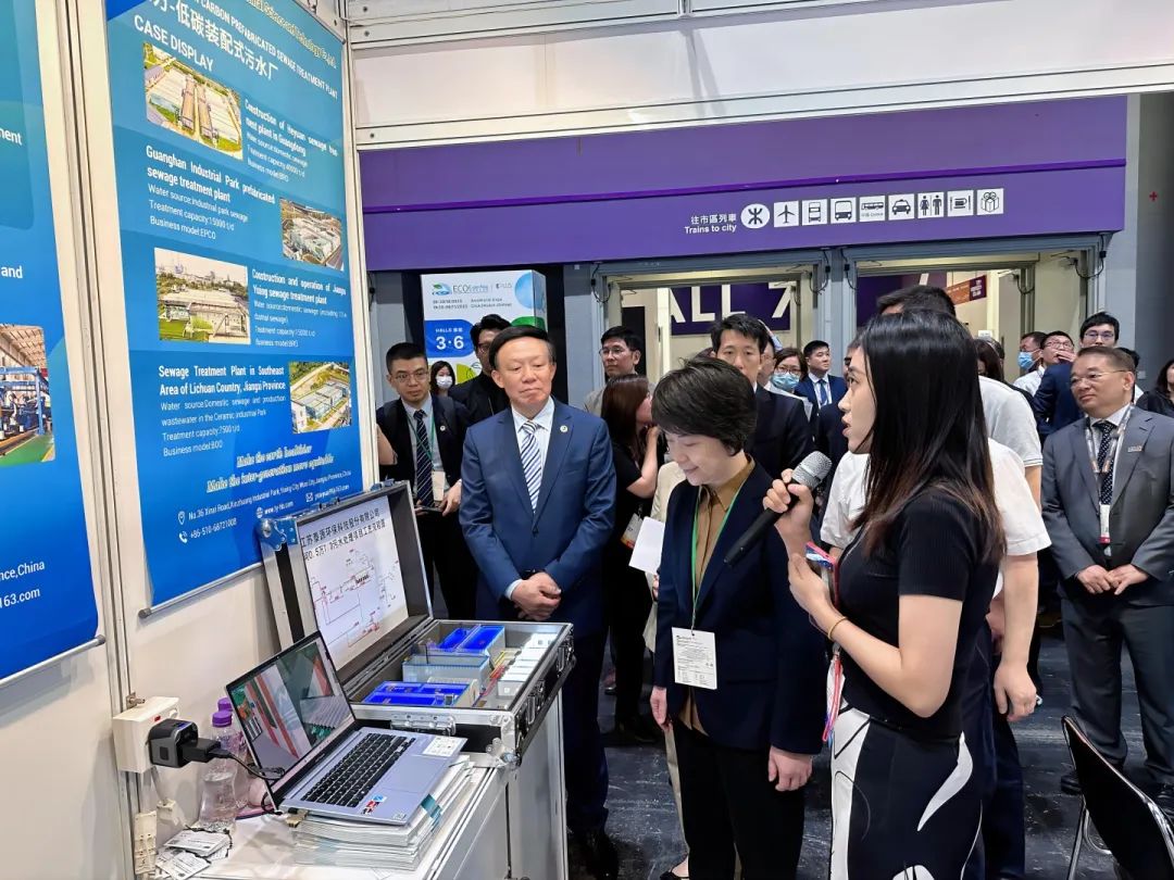 展会现场,我司重点展示了源方装配式污水(净水)厂技术,以其颠覆性的模式创新,将环保工程从“工地建造”转为“工厂智造”,从钢筋混凝土材质转为不锈钢材质以及将传统工艺进行融合和升级,将绿色低碳的环保理念渗透到方方面面,向世界展示中国民营环保企业持续推进“智能化、数字化、低碳化”发展战略的坚定步伐与决心,引领全球绿色出行全面升级,引起国内外参展嘉宾及业内人士高度关注。